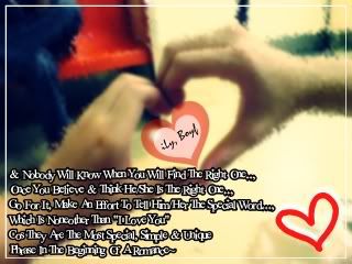 P.S to my Boyf.., take greatest care of yourself, alrightey.. :D Tests are coming up, but must know when to rest, kays ^^ remember you will always have me. Need me, just give me a call/text/email or anything. ♥ ♥